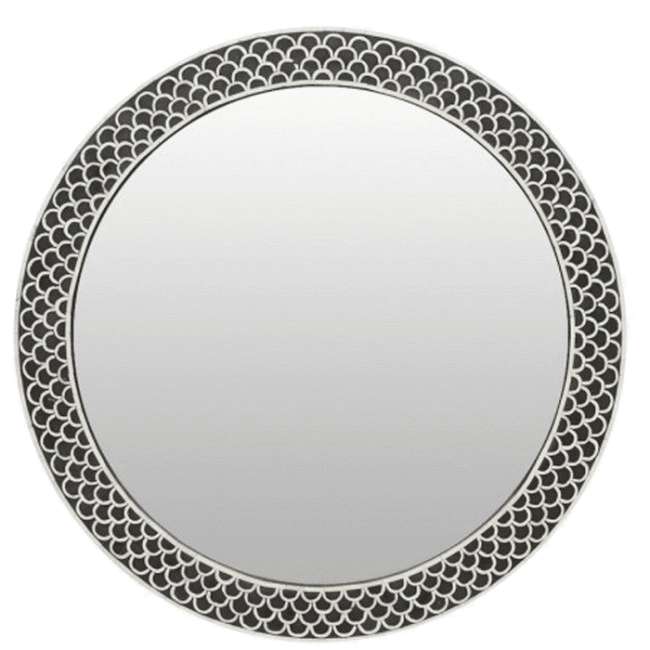 The perfect decorative addition for any room – We present to you our Black Floral Embossed Bone Round Bone Inlay Mirror; with beautifully embossed patterns in a frame of mahogany. The piece is made from high-quality materials and has been fitted with quality hardware for easy mounting on your desired wall or support. A professional touch can be added if required – just let us know what type of design you’d like!