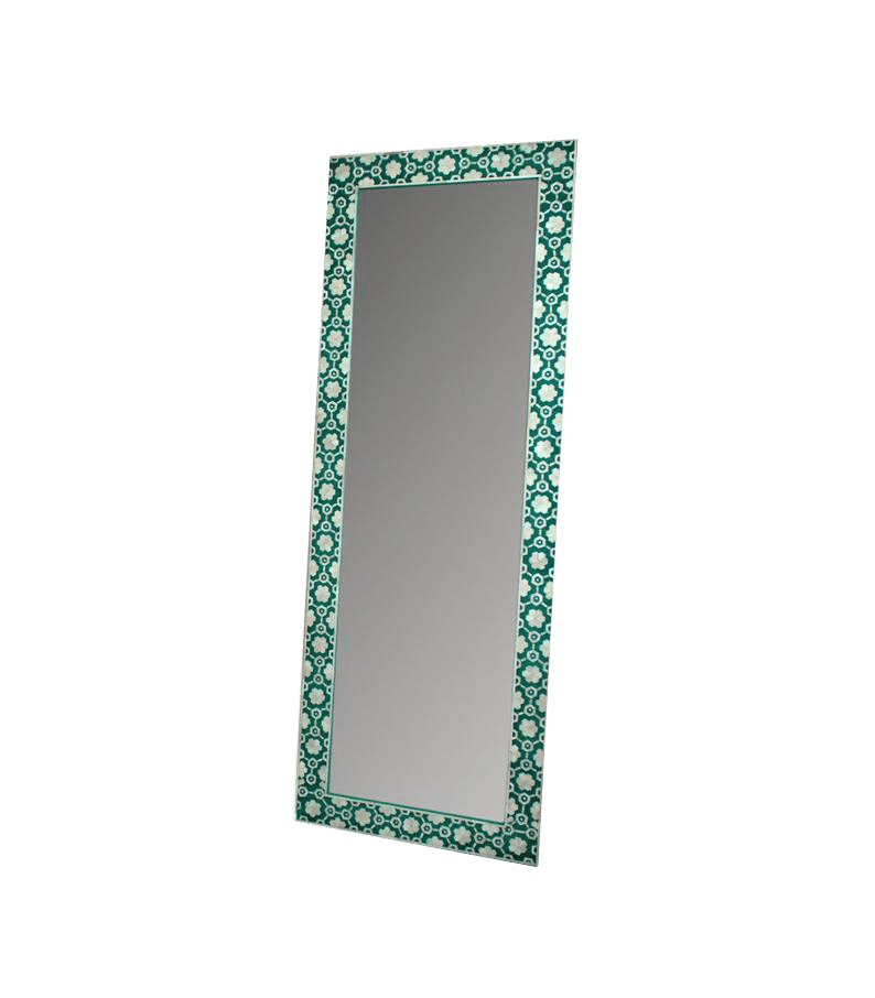 With its sturdiness built on elegance, our frames offer a blend of warm wood and delicate bone accents for an eye-catching accent to any space in need of sophistication and thoughtfulness in equal measure. This handmade bone inlay mirror is the perfect way to make your home truly feel like yours. This adorable mirror matches all décor styles while reflecting warmth back into bare hallways or blank walls with ease. Comes fully ready for hanging!